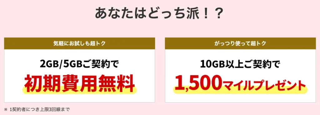 - 2GB / 5GBの契約で初期費用無料